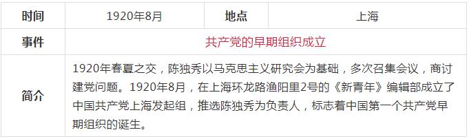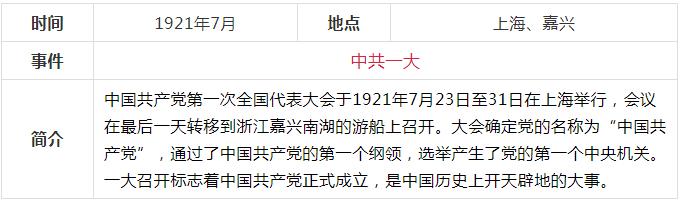 當(dāng)前,黨史學(xué)習(xí)教育活動正在進(jìn)行,《關(guān)于在全黨開展黨史學(xué)習(xí)教育的通知》要求,對黨史學(xué)習(xí)教育作出了部署安排。要做到學(xué)史明理、學(xué)史增信、學(xué)史崇德、學(xué)史力行,為全面建設(shè)社會主義現(xiàn)代化國家、實(shí)現(xiàn)中華民族偉大復(fù)興中國夢而不懈奮斗。確保黨史學(xué)習(xí)教育取得扎實(shí)成效。中共一百年歷史內(nèi)容非常豐富,浩如煙海,通過表格的形式,更容易理清歷史的脈絡(luò),把握重大事件,我們先從新民主主義革命時期開始學(xué)習(xí),下面這張表格通過時間、地點(diǎn)、事件、簡介四個部分作歸納,一目了然。